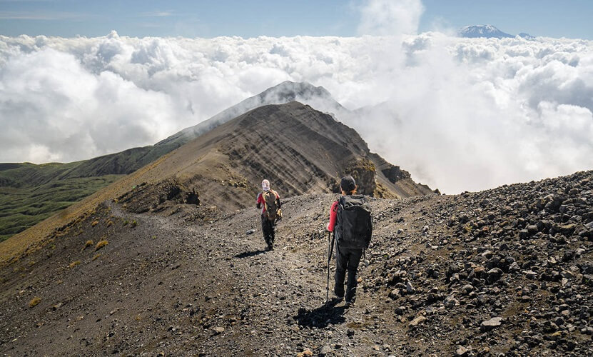 The walk from Miriakamba Hut to the saddle below Little Meru is a short day but a steep climb.The walk will take us slowly along the ridge for a spectacular view of the Meru Crater and the impressive Ash Cone.