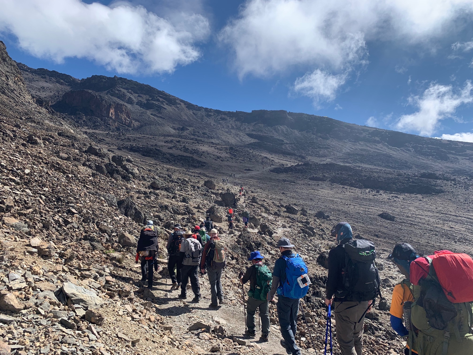 Then you will descend to Barranco Camp (3,960 m). Here you can see the famous Barranco Wall, impressive in both its massive size and steepness! Next day you will be climbing it, but don’t worry: it features a very simple hiking trail.